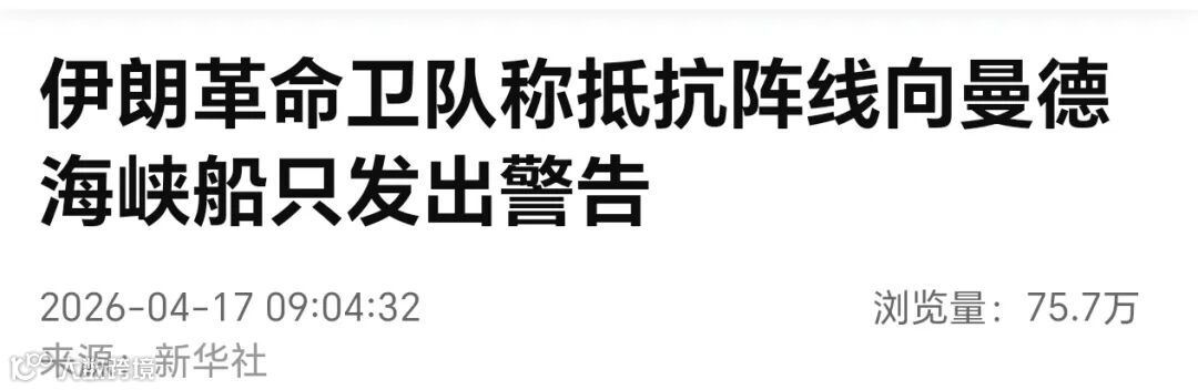 据壹航运消息,4月17日凌晨,伊朗伊斯兰革命卫队通过社交媒体发布警告:一名"抵抗轴心"指挥官已向曼德海峡所有商船与军舰发出严厉警告。