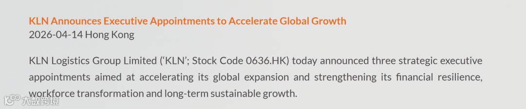 KLN(原嘉里物流)加速推进全球物流前五目标战略,宣布三项高管任命以强化全球业务扩展与财务韧性。