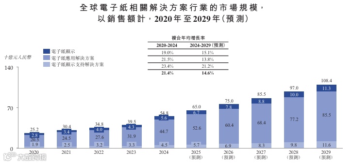 灼识咨询预测,2024至2029年全球电子纸显示器市场将以14.6%的复合年均增长率扩大,规模从548亿元增至1084亿元。其中,智慧零售领域需求旺盛,预计2029年出货量达5.55亿片;智慧教育、物流等领域快速发展将进一步推升市场空间。当前行业集中度高,头部企业技术整合优势显著,竞争格局持续优化。