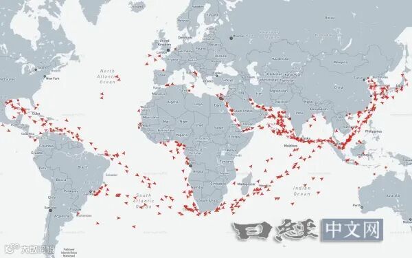 4月16日全球载重量超20万吨的油轮位置(图/ MarineTraffic)