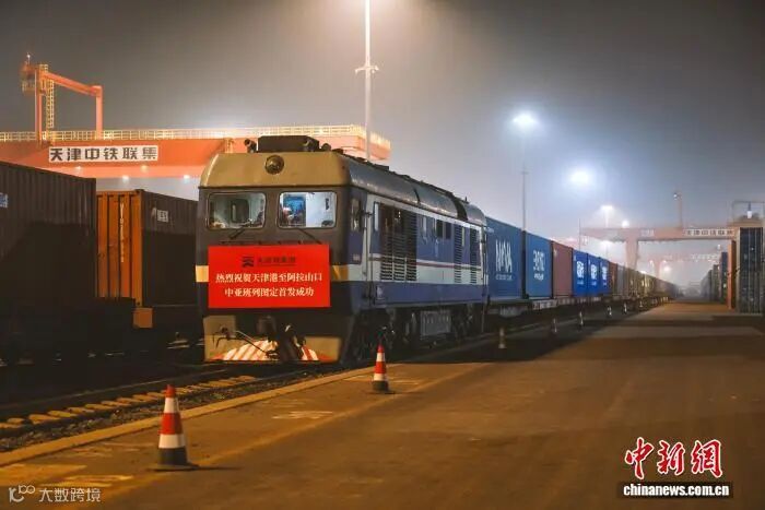 4月16日凌晨,一列满载汽车配件、机械设备的中亚班列从天津集装箱中心站发车,经新疆阿拉山口口岸驶向中亚国家。