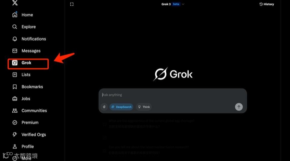 - 网页端:登录X官网,左侧导航栏点击"Gro"图标进入对话界面。