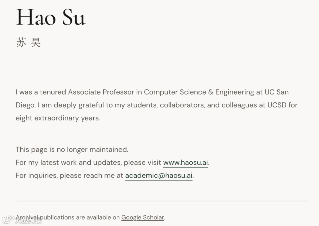 加盟前,苏昊任加州大学圣地亚哥分校计算机科学与工程系副教授及具身智能实验室主任。