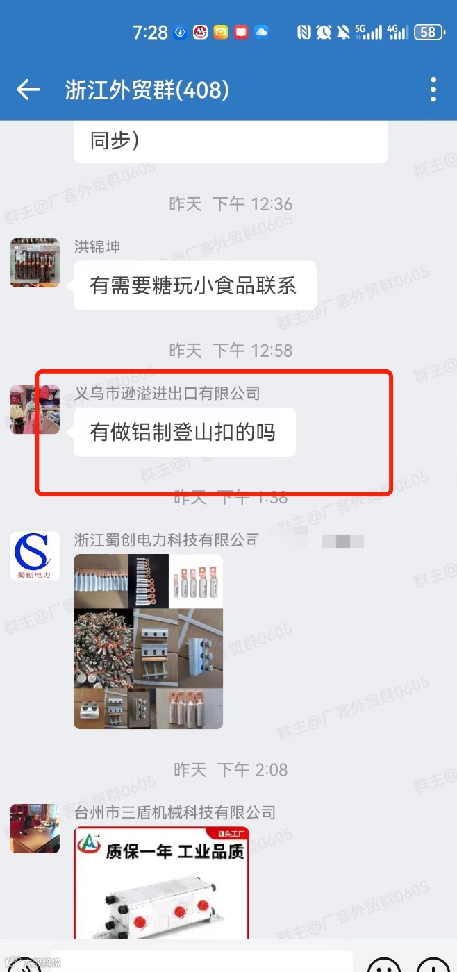 跨境电商交流群现有470余名成员,涵盖外贸公司、生产工厂的决策者及业务骨干。群内支持文字、图片、视频等多形式的采购与产品信息发布,促进企业间高效对接与深度合作。