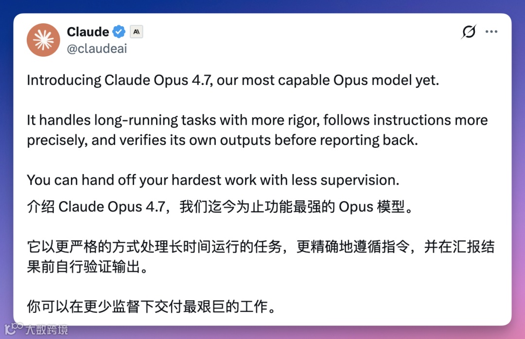 Claude Opus 4.7发布 多项能力显著提升