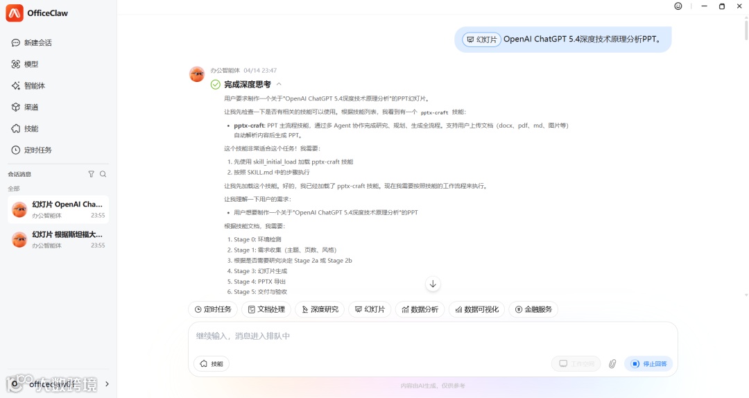 实测一:OpenAI ChatGPT 5.4技术分析PPT生成