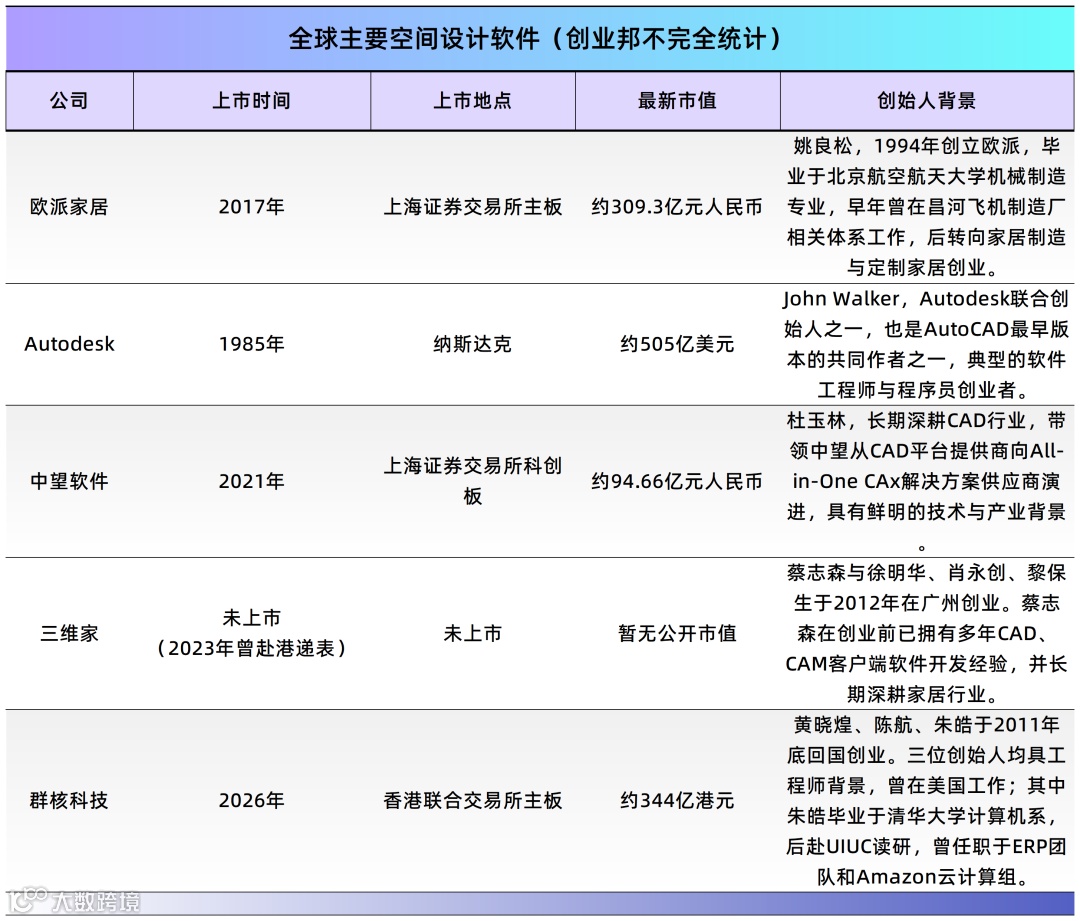 2011年,三位浙大、清华背景的工程师着眼于图形渲染技术创新,历经15年发展,群核科技(核心产品"酷家乐")于4月17日正式登陆港交所,以发行价7.62港元/股开盘飙升至20.7港元/股,市值达344亿港元(约合300亿元人民币),摘得"全球空间智能第一股"称号。