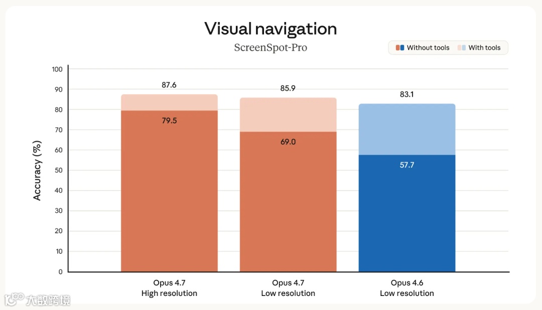模型视觉性能实现质的飞跃,XBOW基准测试得分从4.6版本的54.5%提升至98.5%。同时支持处理长边2576像素的图像(约3.75兆像素),较前代提升3倍以上。实测表明,新模型对合同扫描件、金融年报图表及产品界面元素的识别准确率显著提高,为知识工作者提供高效支持。