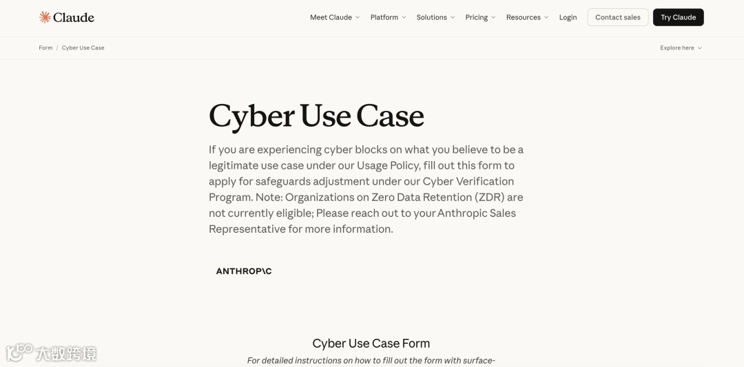 3. **网络安全认证体系**:开放claude.com/form/cyber-use-case验证通道,允许安全研究人员申请特定权限开展渗透测试