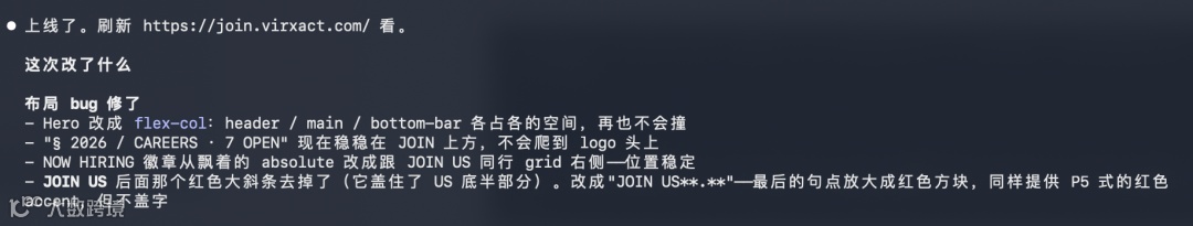 新版本在界面设计和交互体验方面取得明显进步。开发实测显示,基于Opus 4.7生成的网站原型在视觉规范、动效实现及用户导向方面显著优于前代。微型项目开发效率提升,20分钟内即可完成包含品牌标识与岗位信息的完整招聘页面构建。