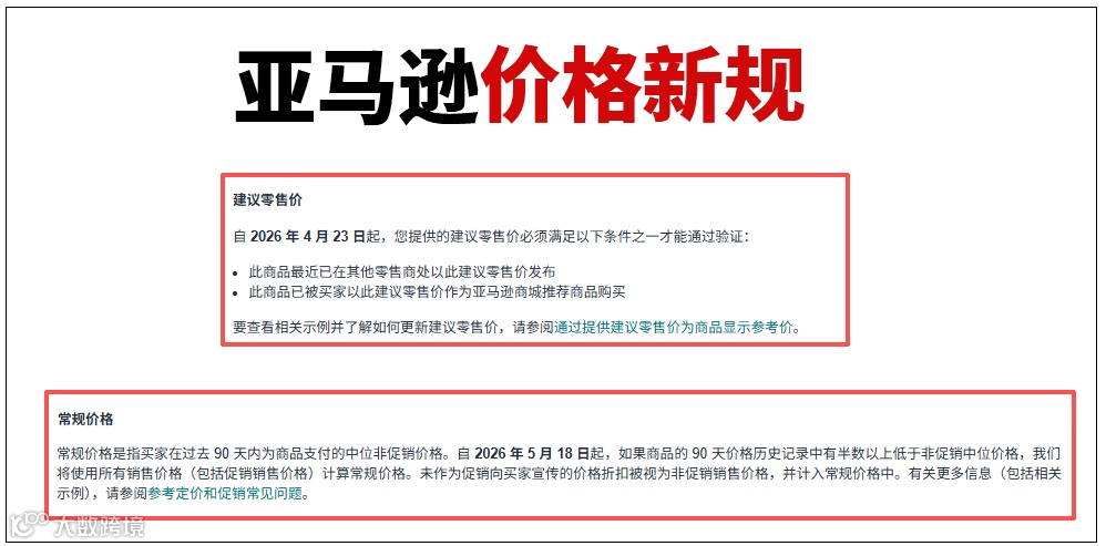 亚马逊两大定价新规将于4月23日、5月18日分批生效,平台虚假折扣时代即将终结。