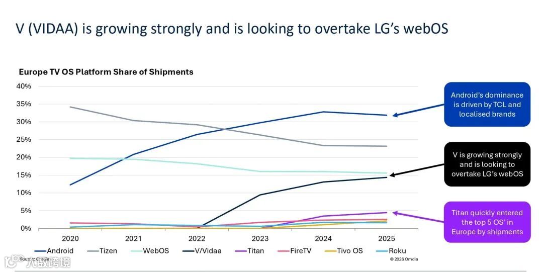 Titan OS等新入局者的崛起进一步凸显欧洲电视操作系统格局的快速演变。