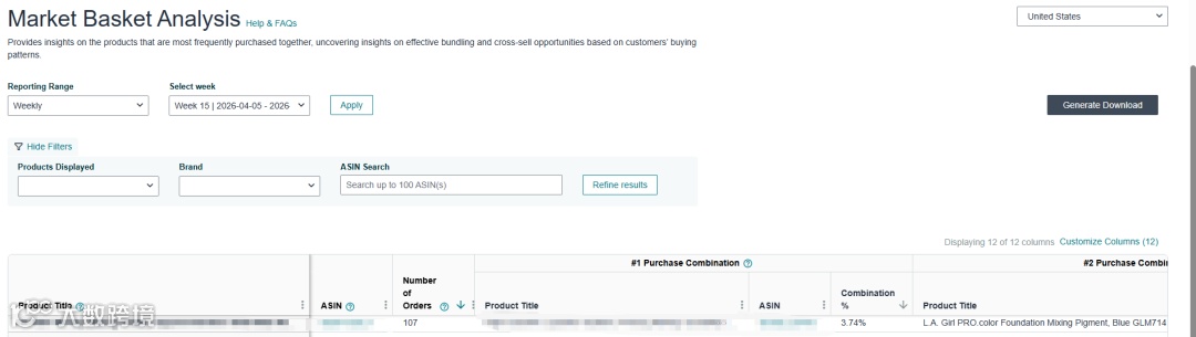 针对关联购买的ASIN,我们可以通过Market Basket Analysis找到与我们ASIN一起购买的商品,进行关联商品投放,路径:Brands