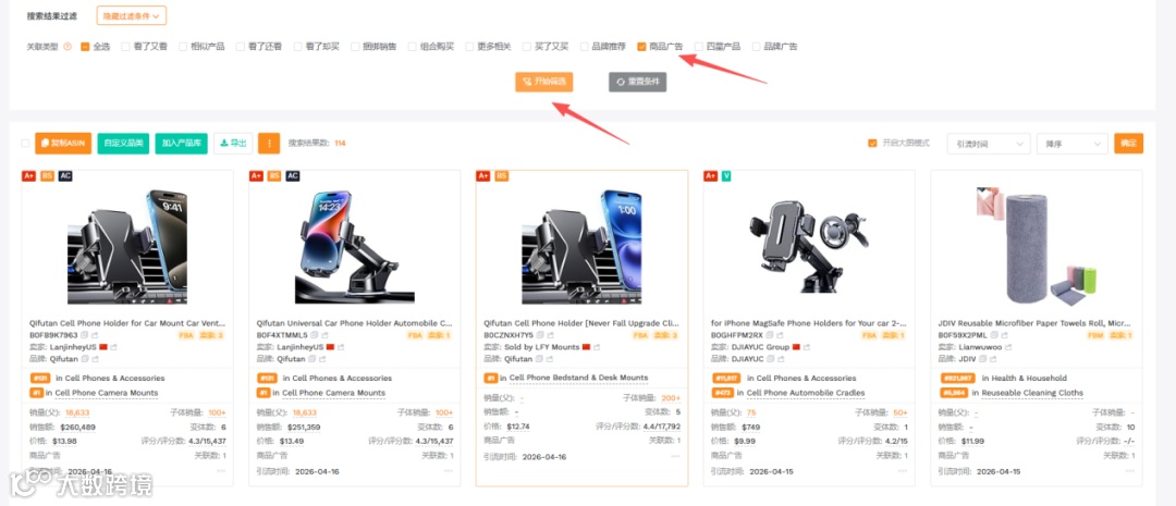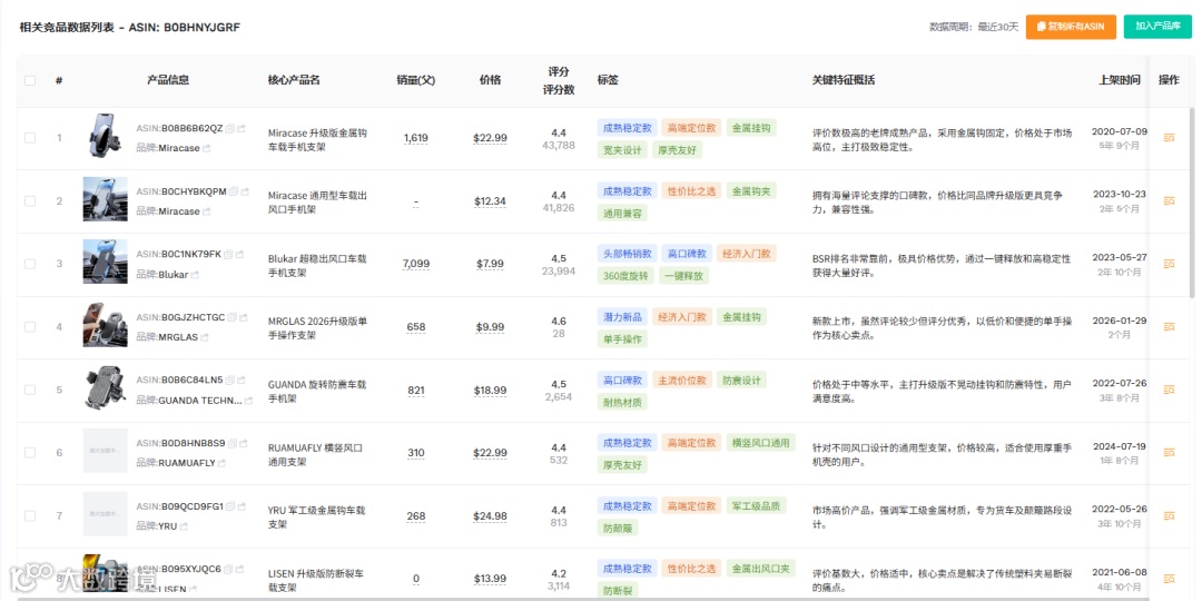 在选择ASIN的时候,我们可以通过查询对手的商品广告位ASIN,进行层别后投放,我们还可以通过AI找到快速找到与我们相似的竞品进行投放,投放前可以先排除价格比我们低,评分比我们高的AISN