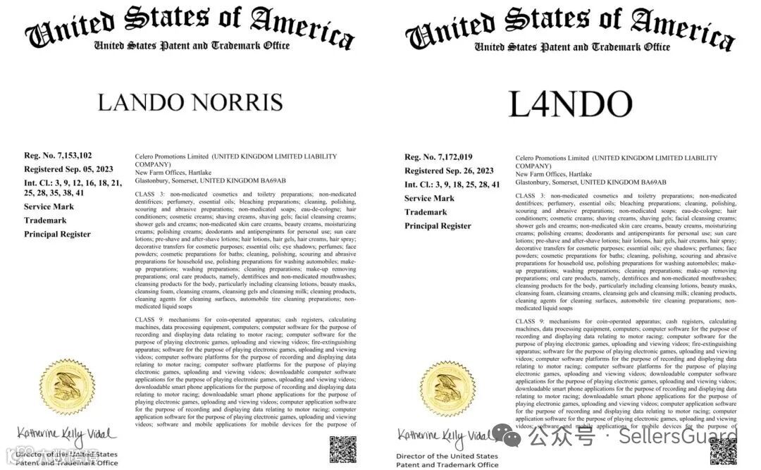 据美国法院立案信息,我们关注到2026年4月9日,Aronberg Goldgehn律所代理英国F1冠军车手Lando Norris针对未经授权使用其个人品牌的跨境卖家,就其个人姓名、肖像等商标发起维权。这是 Lando Norris 品牌2026 年首次发案,也是其第 7 次维权行动,历史累计冻结近700 家店。