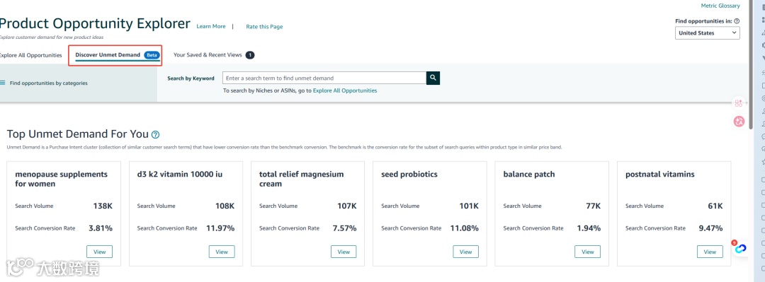 亚马逊商机探测器重磅上线了新功能:发现未被满足的需求 (Discover Unmet Demand)。帮你解决选品痛点。