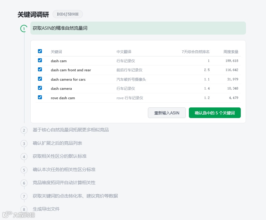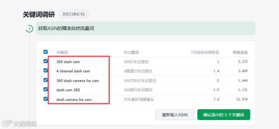 输入asin之后我们发现5个关键词和刚刚是不一样的
