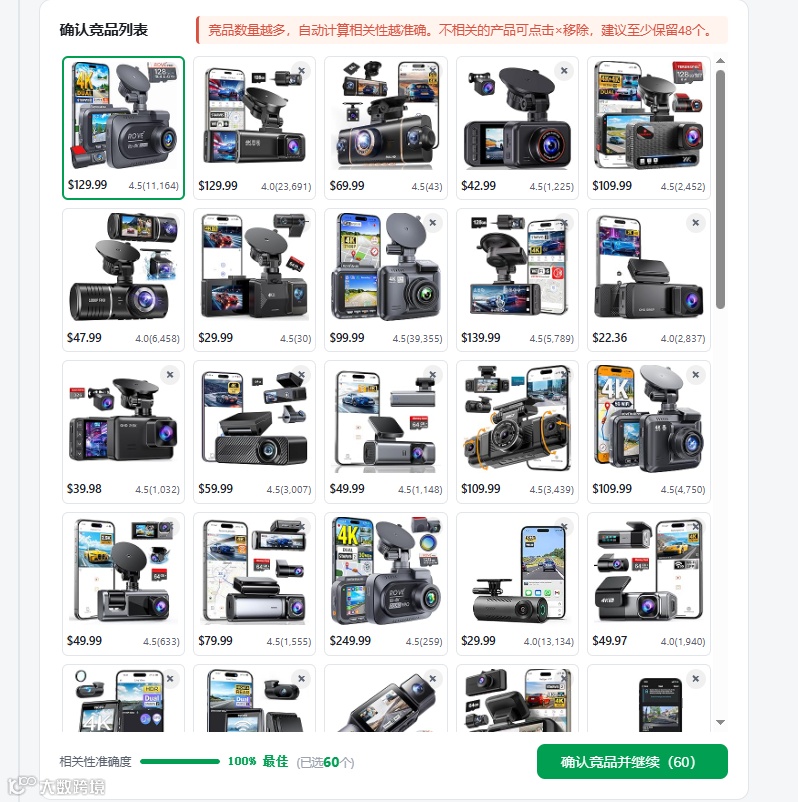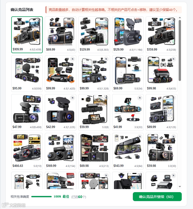 他会自动帮你找到60个竞对,如果不对的你可以×掉,建议最少还是保留48个,我看到基本都是准确的