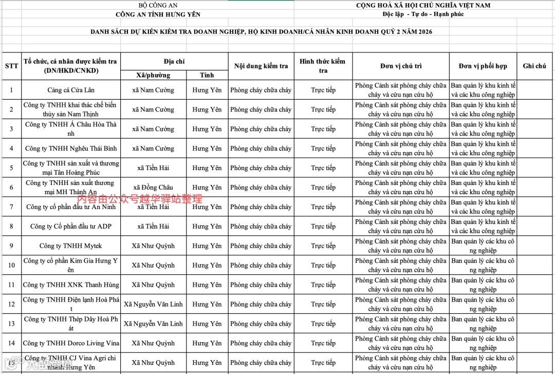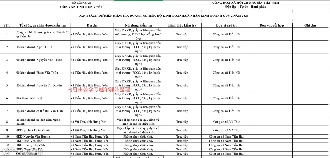 值得注意的是,这并非地方层面的单独行动。早在此前,越南公安部已出台第12号计划(12/KH-BCA),在全国范围内部署年度检查工作。该计划明确提出,本轮检查不仅是为了发现和处理违法行为,更强调通过监管手段帮助企业纠偏、解决实际经营中的堵点问题,从而优化整体投资环境。