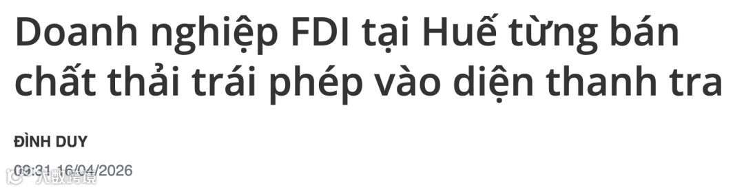 在环保监管持续收紧的背景下,越南承天顺化市再度出手,多家企业被纳入重点检查名单,其中一家曾因违规处置危险废物而被处罚的外资企业,再次成为焦点。