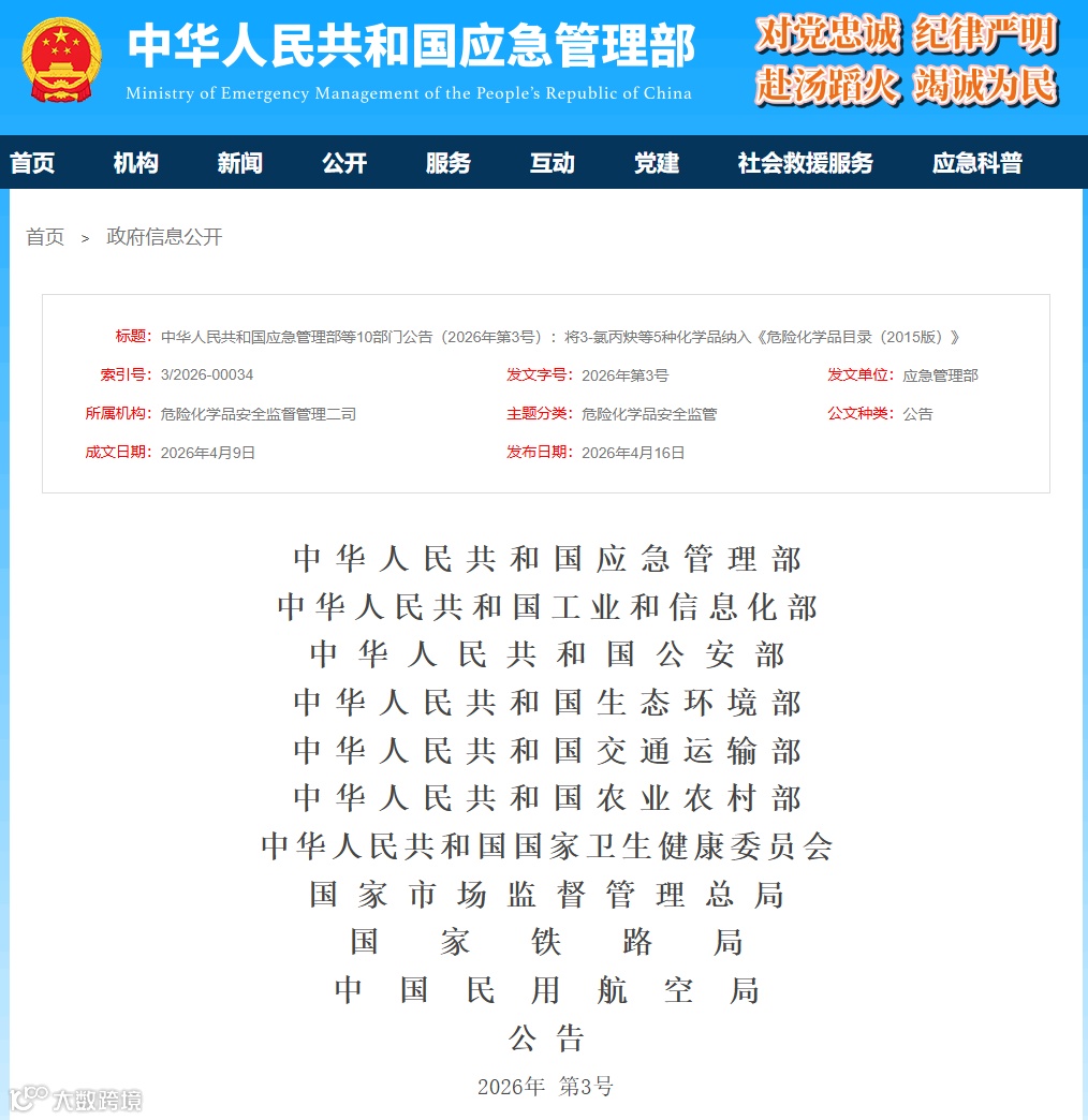 继2022年11月调整柴油管理后,应急管理部再次对危化品目录进行修订,新增5种化学品纳入管理。