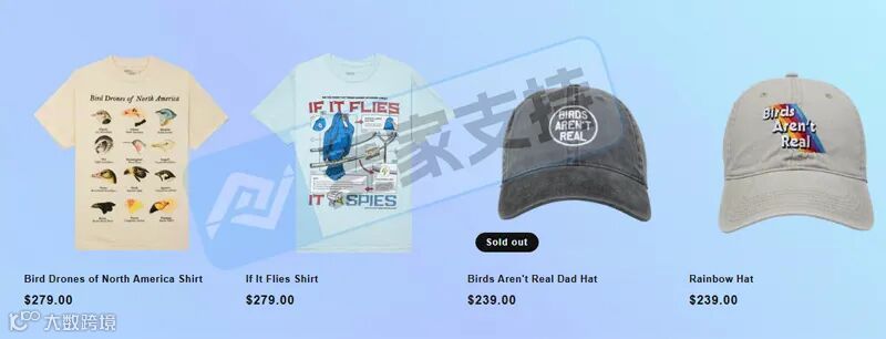 Birds Aren’t Real 通过举办集会、游行,以及在网上销售印有标志性口号的T恤、帽子等周边商品,迅速吸引了大量年轻人的关注。其追随者自称Bird Brigade,以夸张和幽默的方式表达对阴谋论的批判态度。尽管该品牌以玩笑形式呈现,但它却深刻揭示了阴谋论的荒谬性,并鼓励人们以批判性眼光看待信息。Birds Aren’t Real 不仅是一个讽刺品牌,更是一个社会现象,反映了年轻人对现实社会的不满与批判精神,以及用创意和幽默对抗荒诞的勇气。在Facebook、Instagram、抖音和YouTube等平台上有强大社交媒体影响力,目前已拥有数百万观看量的病毒式视频,以及高评价周边商品。