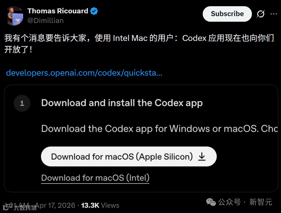 在这次更新中,Codex首次获得了对Intel Mac的支持