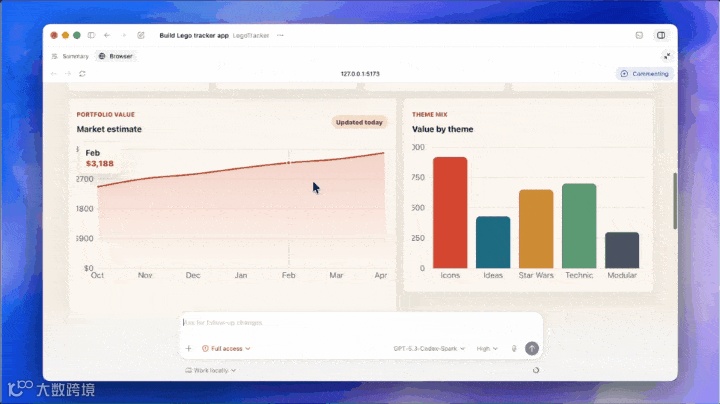 Codex能理解视觉和空间上下文,后台即时修改代码,页面实时刷新。
