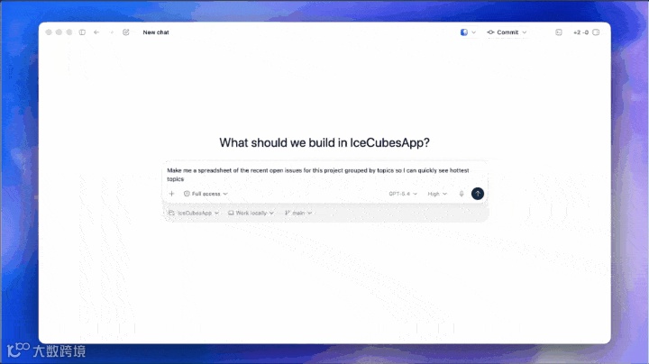 演示中,用户让Codex整理当前项目最近的open issues,按主题分组生成一张表格。