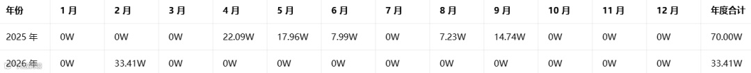 2026 年 1-2 月仅 2 月实现出口,累计规模较 2025 年全年出现显著收缩,金额同比下滑 52.27%,数量同比下滑 47.19%,但单月出口规模创下历史新高,市场仍具备增长潜力。