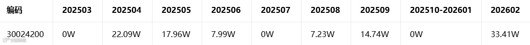 本次统计仅覆盖海关编码 30024200,其 2025 年 1 月 - 2026 年 2 月的月度交易额趋势如下: