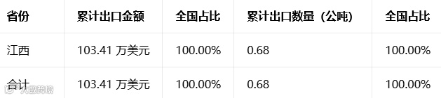 唯一出口省份:江西省贡献全周期 100% 的出口额与出口量