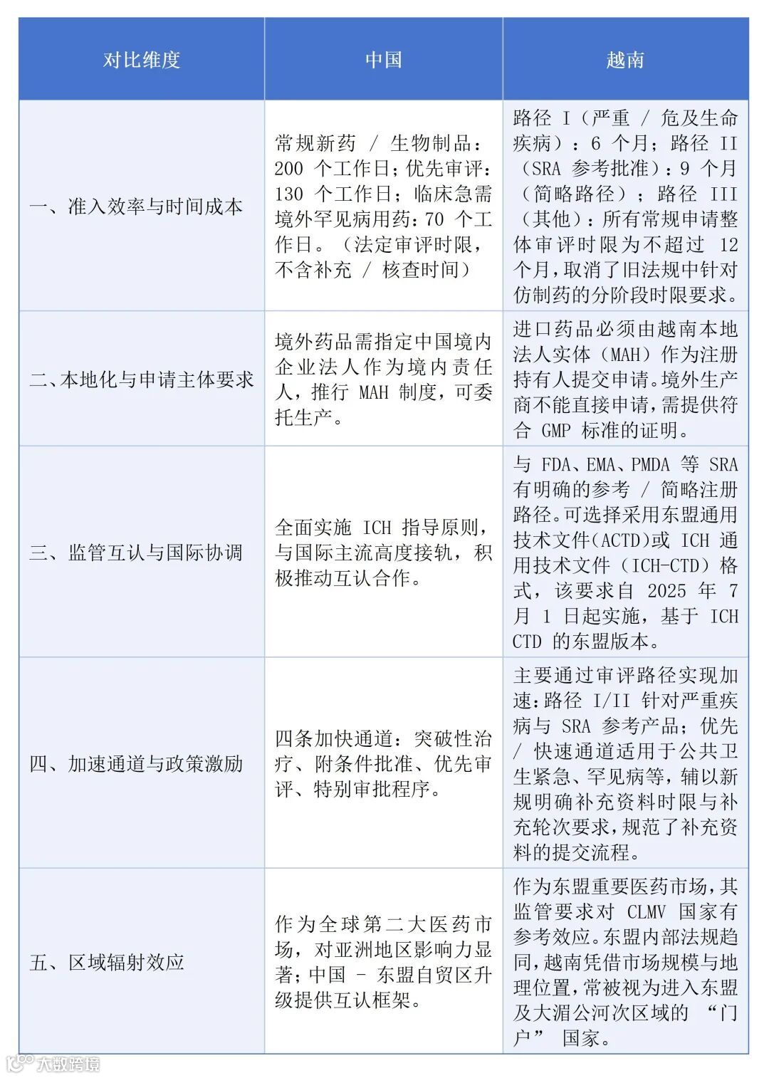 以下是从五大关键维度对中国与越南药品注册制度的系统性对比,以表格形式清晰呈现,便于快速把握两国监管差异与战略机会:
