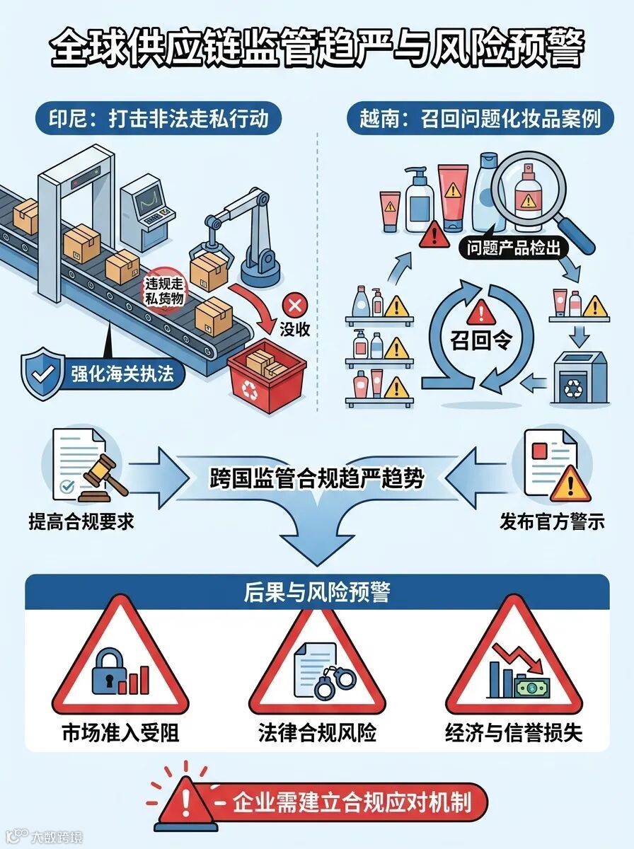 🔍 各国监管趋严:印尼打击走私,越南召回问题化妆品