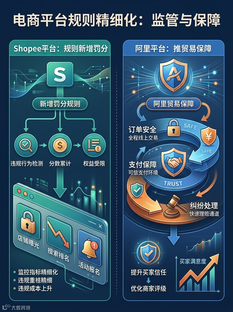 ⚠️ 平台规则精细化:Shopee新增罚分规则,阿里推贸易保障