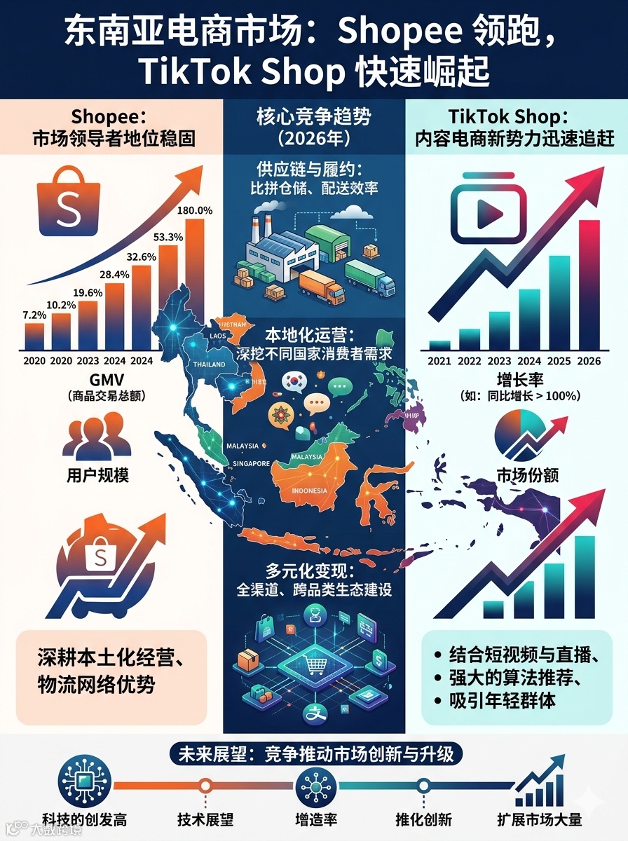 🚀 东南亚电商竞争加剧:Shopee领跑,TikTok Shop迅速追赶