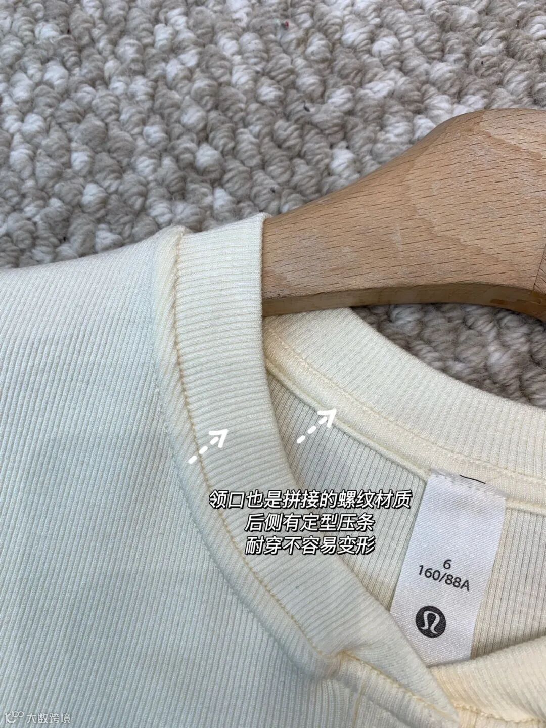 而且领口做了加宽的螺纹包边