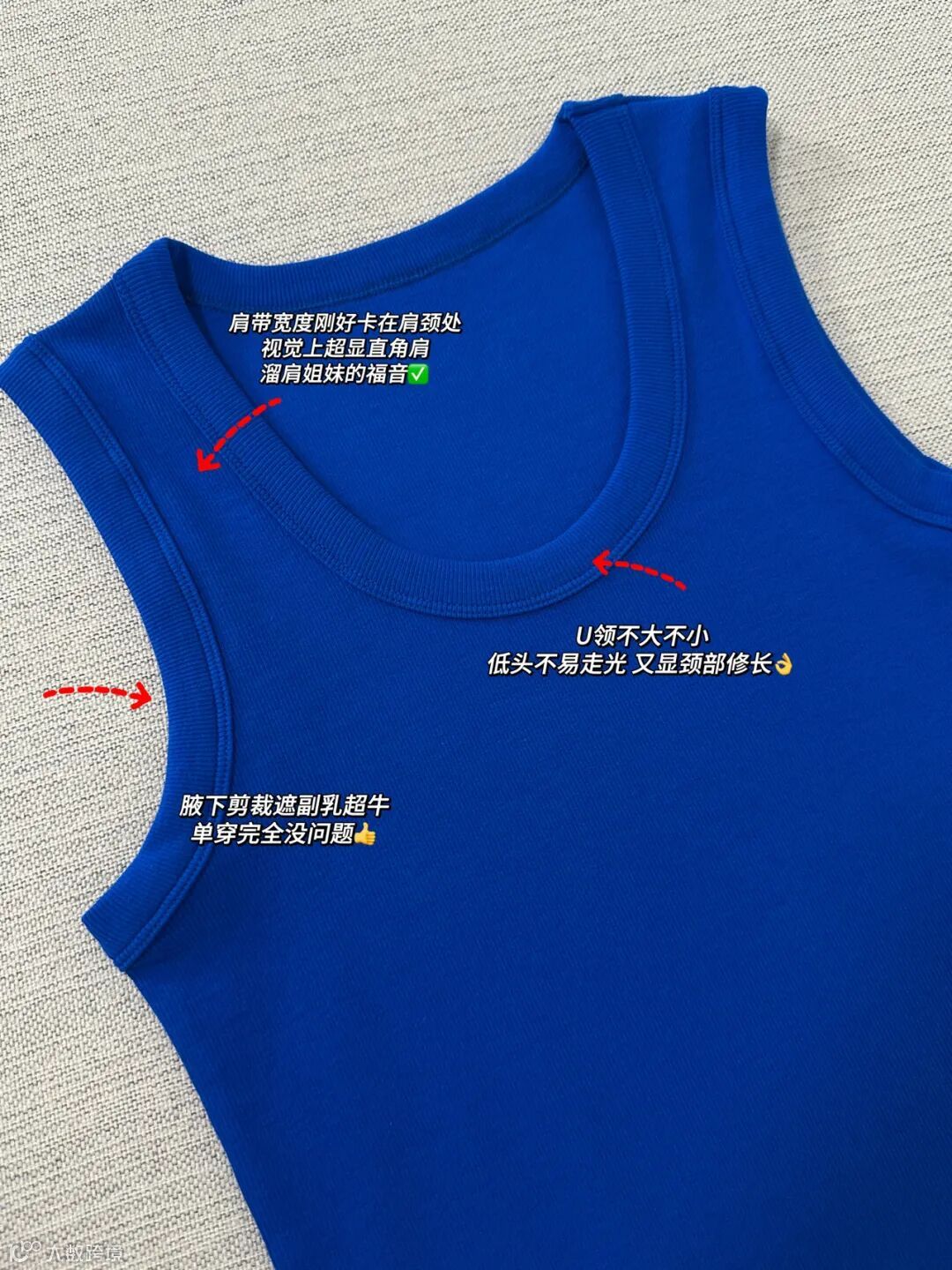 而且 这一件我敢说遮副乳真的封神👍很多女性不敢单穿 要么怕太露要么版型不好显胖 这件背心大可放心😎。包裹性恰到好处 U领的大小是弯腰也不易走光