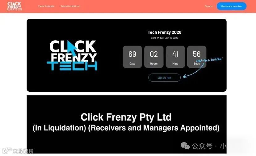 紧接着,澳洲电商促销平台Click Frenzy也宣布自愿清盘。