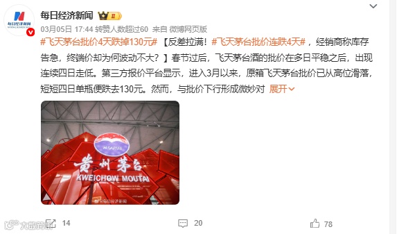 茅台主动调节发货节奏以缓解渠道库存压力,避免价格崩盘。2025年飞天茅台市场价持续走低,“双十一”期间部分电商平台价格跌破1400元/瓶,经销商普遍出现亏损。需求端呈现三重收缩:高端商务宴请减少、政务消费降温、年轻消费群体对高度白酒接受度持续降低。
