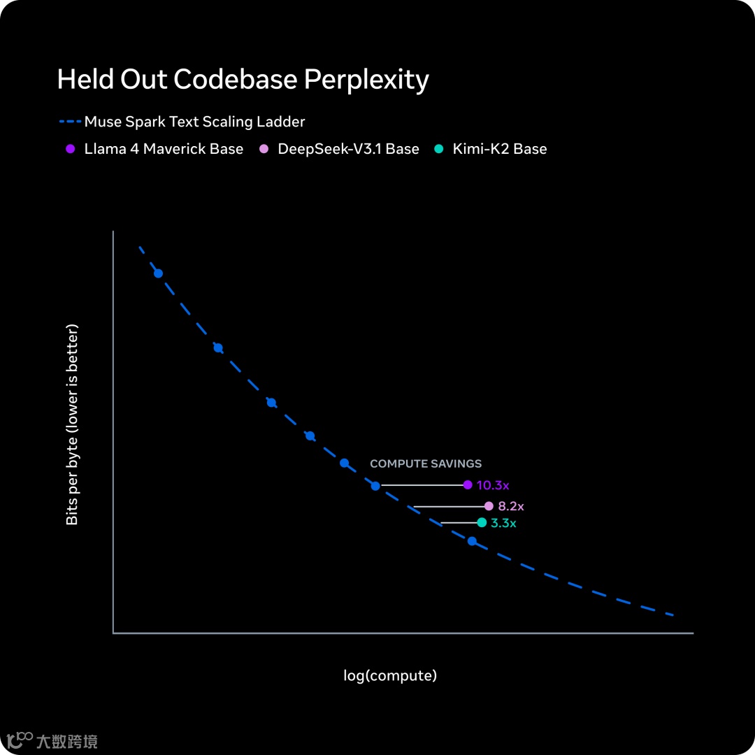 团队对预训练体系进行全方位重构,涵盖模型架构、优化方法及数据构建。新体系显著提升算力效率,相比Llama 4 Maverick,现可用超过一个数量级更少的算力达到相同能力水平。
