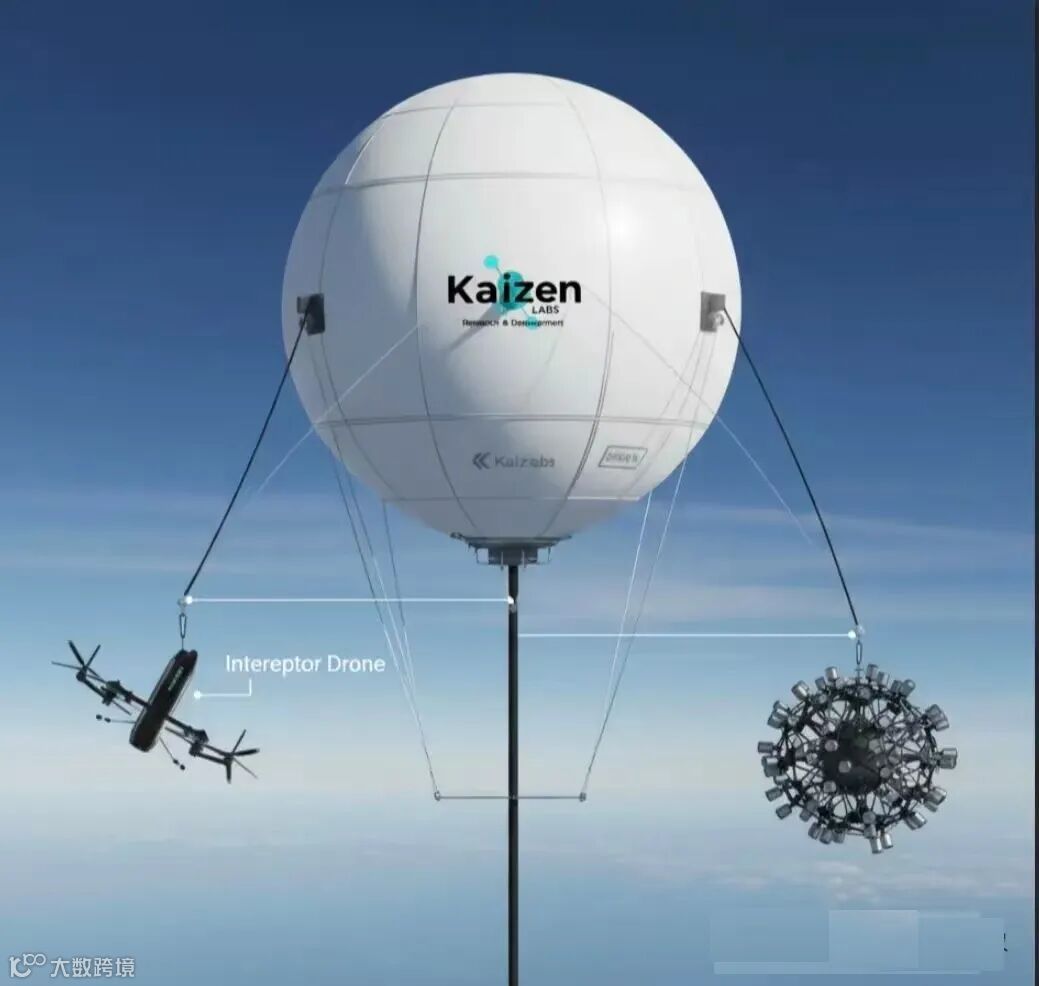 乌克兰Kaizen Labs研发的AeroSentinel(空中哨兵)系留气球防御系统,部署于1-2千米高空,以静默隐蔽、大范围覆盖特点专注低空安防领域,专门应对日益严峻的无人机威胁。