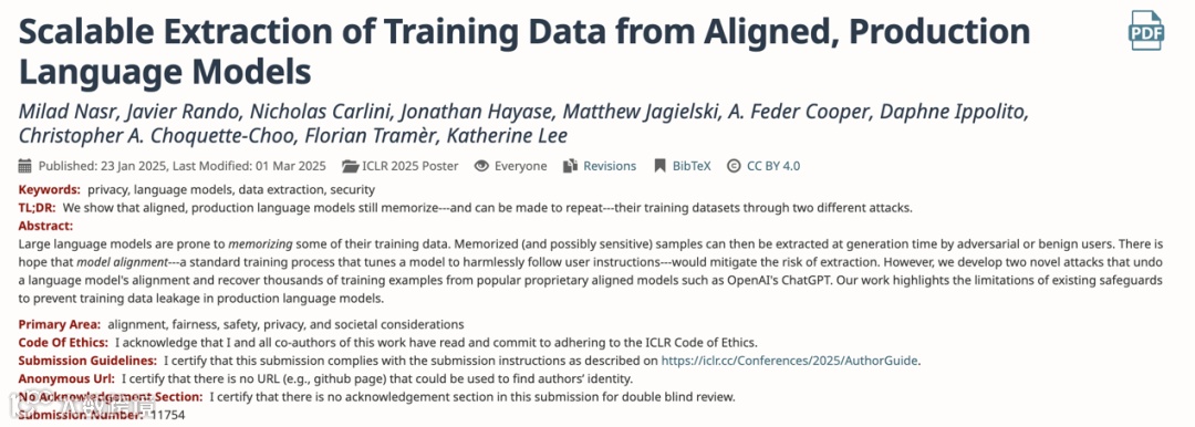 研究证实,现有技术难以阻止训练数据泄露。Google DeepMind实验证明,23%对话中可诱导模型输出原始训练内容。窄领域数据(如企业Slack存档)因个人痕迹显著,风险更高。