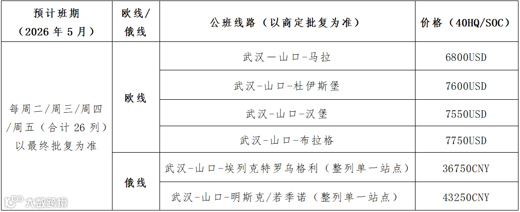 尊敬的客户:感谢您对我司的信任与支持!为提升竞价透明度与公平性,我司即日起全面采用线上竞价模式。现将5月图定班列竞价事项通知如下: