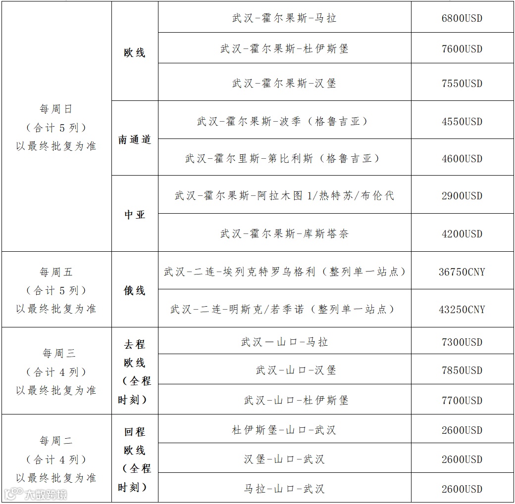 4. 欧洲、东欧及波兰等线路发运时间为周四、周日;