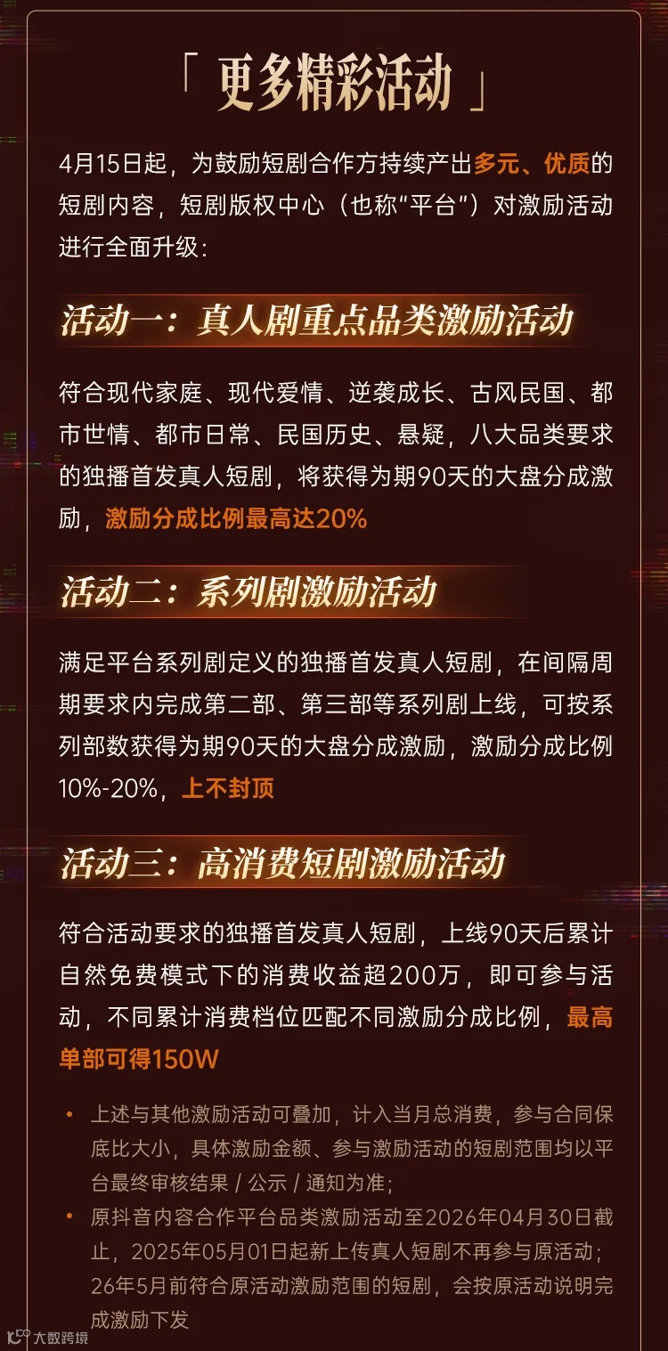 导读:针对重点品类、系列剧、高消费剧持续释放激励
