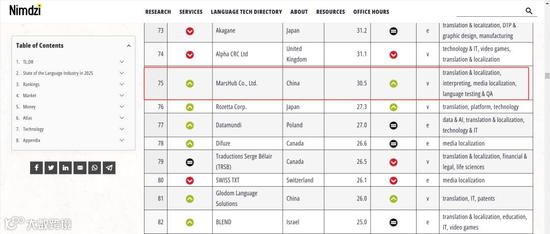 火星语盟位列Nimdzi Insights 2026年全球语言服务商Top 100榜单第79位