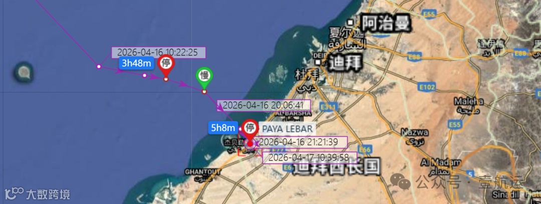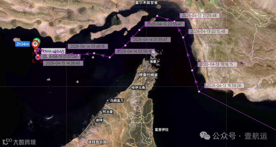 4月13日美国宣布封锁进出伊朗港口船只前数小时,"PAYA LEBAR"轮(IMO 9134232,运力3200标箱)由SeaLead Shipping运营,顺利从阿曼湾通过霍尔木兹海峡进入波斯湾,成为近期首艘通行的非伊朗籍满载集装箱船。