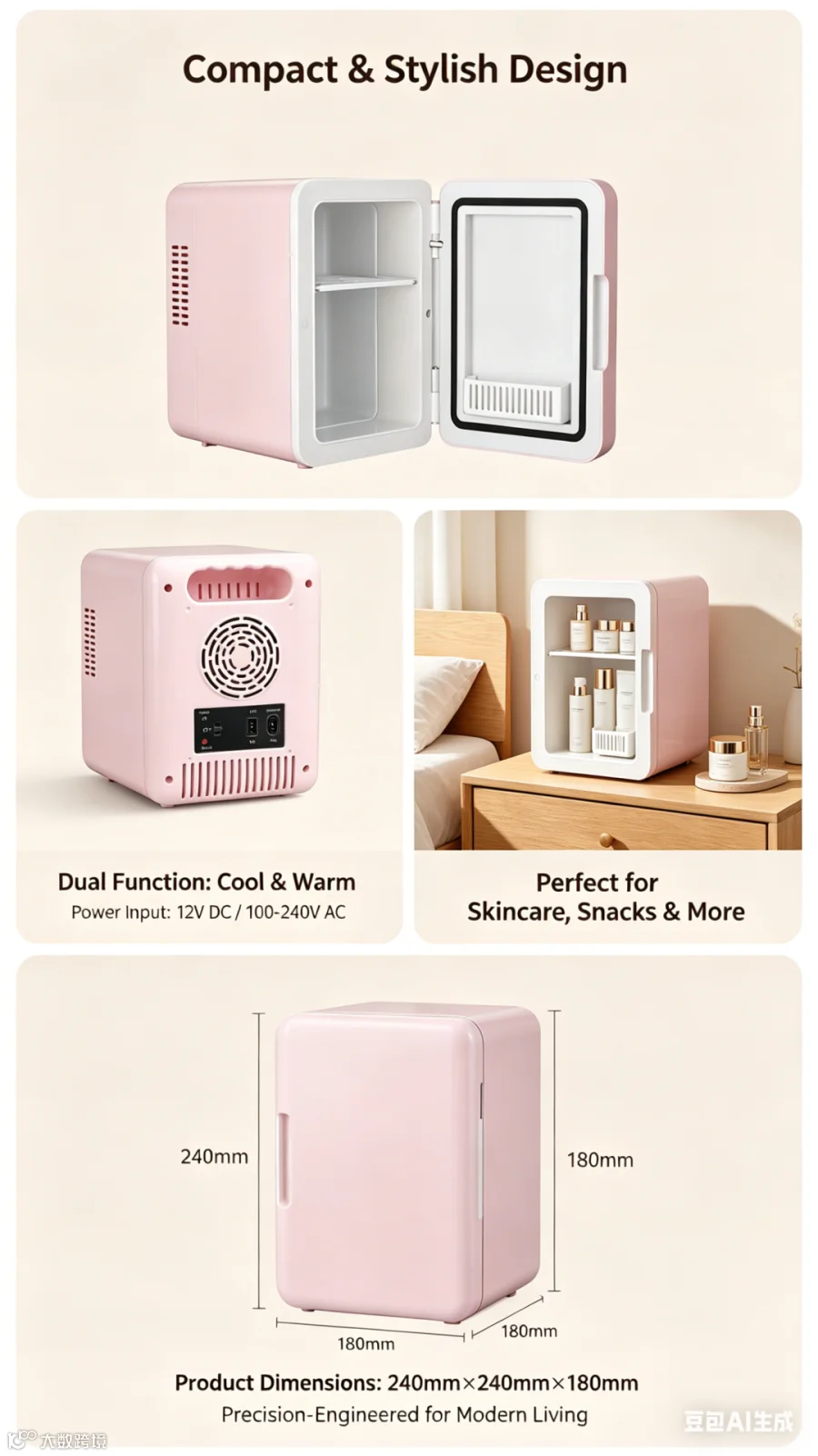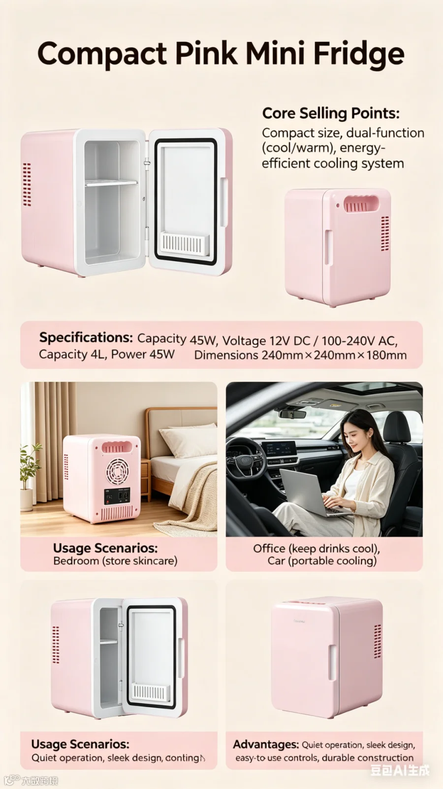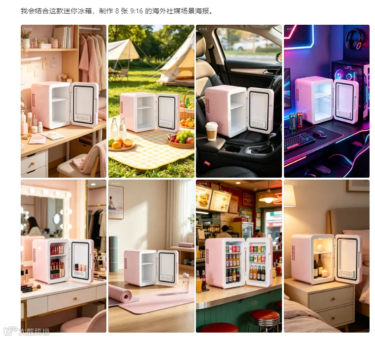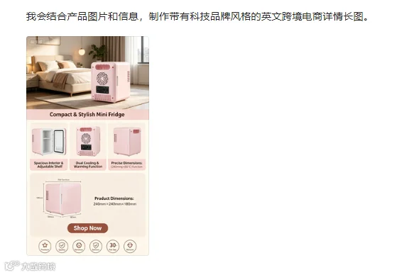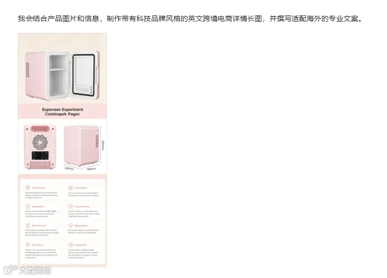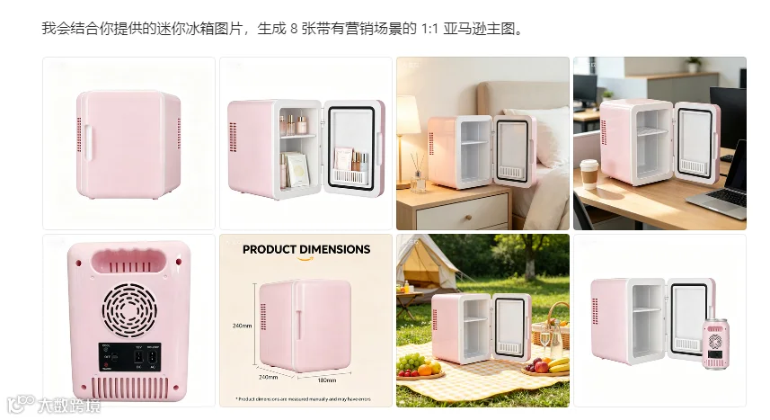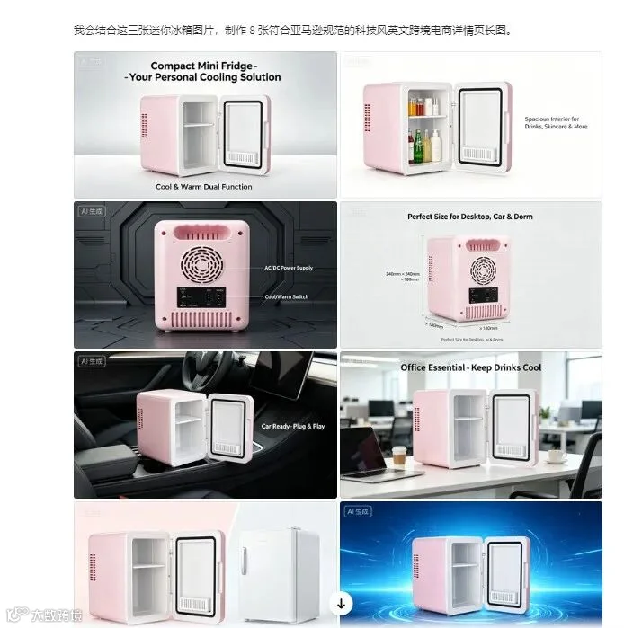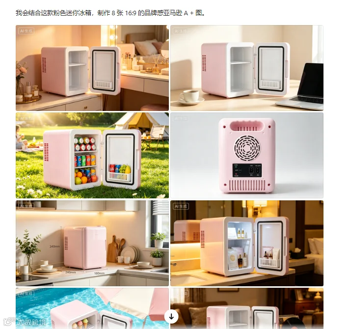 通过精准提示词设计,可高效生成亚马逊主图、场景展示图、A+页面元素及详情页长图,满足跨境电商视觉需求。