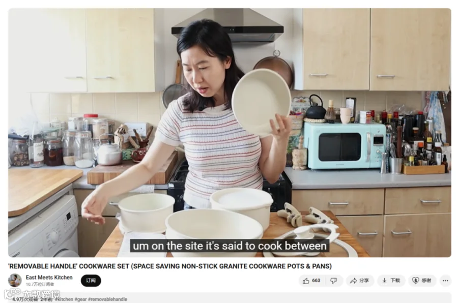 比如他们和拥有 10 万粉丝的博主 East Meets Kitchen 合作,针对可拆卸手柄锅做了深度体验分享,详细讲解了产品的材质、尺寸,以及收纳空间的优化逻辑,这条视频收获了 4.9 万播放,有效拉动后续的转化。